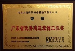 集團參股企業(yè)華麗裝修家私企業(yè)公司承建的“南山大道街景綜合整治工程Ⅲ標段”繼獲得2012年度深圳裝飾工程金鵬獎(公裝類)后捷報頻傳,再一次榮獲廣東省建筑裝飾工程最高榮譽獎“廣東省優(yōu)秀建筑裝飾工程獎”(以下簡稱“省優(yōu)”)。2013年10月廣東省建筑業(yè)協(xié)會建筑裝飾分會授予華麗公司“省優(yōu)”獎杯、牌匾及證書。該工程經(jīng)深圳市裝飾行業(yè)協(xié)會的專家嚴格檢查評比之后擇優(yōu)推薦到廣東省建筑業(yè)協(xié)會建筑裝飾分會,由省建筑業(yè)協(xié)會建筑裝飾分會組織廣東省內(nèi)的專家對“省優(yōu)”申報資料及現(xiàn)場進行嚴格的考察評比,經(jīng)“省優(yōu)”評委會評審通過,華麗公司再次榮獲殊榮。